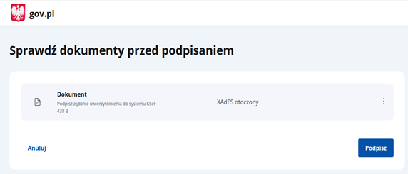 Wejdź na stronę https://mcu.mf.gov.pl i zaloguj się do systemu MCU (Ministerstwo Cyfryzacji Usługi) używając Profilu Zaufanego. Na ekranie zobaczysz panel 'Sprawdź dokumenty przed podpisaniem’. To pierwszy krok uwierzytelnienia w systemie.